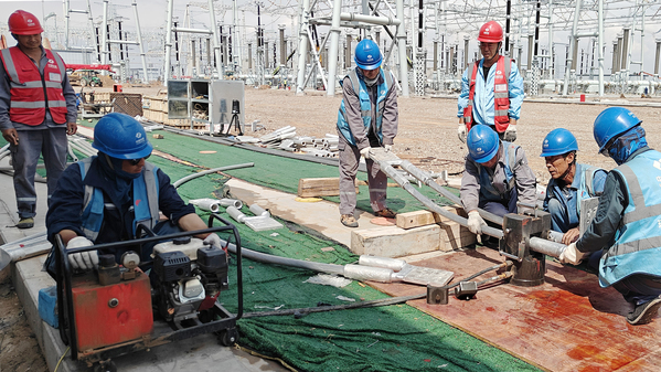 騰格里沙漠南緣,高遠(yuǎn)湛藍(lán)的天空下,“寧電入湘”特高壓直流輸電工程的配套工程寧夏甘塘750千伏變電站盡收眼底,它將承載中衛(wèi)沙漠光伏基地新能源匯集、送往湖南地區(qū)的重任,對優(yōu)化區(qū)域能源結(jié)構(gòu)、促進(jìn)地方經(jīng)濟(jì)發(fā)展具有舉足輕重的意義。江西水電承建全站電氣設(shè)備安裝、調(diào)試,施工管理團(tuán)隊(duì)滿懷熱忱,超前謀劃、重點(diǎn)部署,克服重重困難,以匠心鑄造電力能源“心臟”,高效推進(jìn)項(xiàng)目履約。 戰(zhàn)嚴(yán)寒 “雙驅(qū)動”壓實(shí)關(guān)鍵節(jié)點(diǎn) “甘塘750千伏變電站新建工程是公司首次承接的750千伏電壓等級電氣安裝工程,公司上下高度重視,項(xiàng)目首批人員進(jìn)場后,就要求將匠心精神融入細(xì)節(jié),實(shí)行現(xiàn)場進(jìn)度管控、安全管理“雙驅(qū)動”,在確保安全的前提下,壓實(shí)安裝、調(diào)試等工作關(guān)鍵節(jié)點(diǎn),確保項(xiàng)目建設(shè)有序推進(jìn)……” 項(xiàng)目經(jīng)理告訴筆者,為確保工程進(jìn)度,提前按照工程里程碑計(jì)劃,制定全站鋼構(gòu)架和一二次設(shè)備吊裝、安裝方案,圍繞施工重點(diǎn)、難點(diǎn)、危險點(diǎn),從人員配置、機(jī)械準(zhǔn)備、材料供給、方案措施、環(huán)境影響等方面做了多項(xiàng)預(yù)案。 2024年12月15日,現(xiàn)場調(diào)集65名作業(yè)人員、12臺(套)起重吊裝機(jī)械,在330千伏區(qū)域正式啟動構(gòu)架吊裝作業(yè)。當(dāng)?shù)貧鉁伢E降至零下15攝氏度左右,項(xiàng)目部給施工人員配備全套保暖裝備,又在現(xiàn)場搭設(shè)取暖房,以確保施工人員在吊裝期間能抵抗嚴(yán)寒。通過大家的齊心協(xié)力首戰(zhàn)告捷,不到10天時間完成約700噸構(gòu)架吊裝任務(wù),得到業(yè)主單位的高度肯定,特發(fā)來感謝信表揚(yáng)。 2025年3月8日,針對750千伏構(gòu)架吊裝單吊重量超60噸、橫梁跨度超過44米、最高起吊68米等情況,項(xiàng)目部為降低吊裝風(fēng)險,現(xiàn)場進(jìn)行多次風(fēng)險辨識及評估,優(yōu)化施工方案。現(xiàn)場全體作業(yè)人員頂著寒潮、低溫、大風(fēng)天氣等困難,再次攻克難關(guān),提前10天完成約2900噸構(gòu)架吊裝任務(wù)。 特別是750千伏鋼構(gòu)架吊裝方案經(jīng)反復(fù)驗(yàn)算、多級審批后邀請專家論證,攻克了多項(xiàng)吊裝技術(shù)難題,組合構(gòu)架柱以分段吊裝、空中法蘭對接,橫梁以整體吊裝等多種作業(yè)方式,使全站構(gòu)(支)架安裝工時縮短。現(xiàn)場還采用智慧監(jiān)控系統(tǒng)及無人機(jī)巡檢技術(shù),實(shí)時追蹤施工進(jìn)度、安全、質(zhì)量,有效提高工程施工進(jìn)度、工效。 重謀劃 “多點(diǎn)開花”勇挑建設(shè)重?fù)?dān) “甘塘750千伏變電站,主要建設(shè)3組210萬千伏安主變壓器、2個750千伏出線間隔、6個330千伏出線間隔、66千伏側(cè)安裝1組120兆乏并聯(lián)電抗器、9組120兆乏并聯(lián)電容器……” 項(xiàng)目總工介紹,全站一二次設(shè)備1000余臺(套)設(shè)備,為確保施工進(jìn)度,項(xiàng)目部重謀劃,安裝作業(yè)“多點(diǎn)開花”,順利推進(jìn)項(xiàng)目建設(shè)。以設(shè)備金具為例,全站型號超130種,數(shù)量高達(dá)幾千個,每個金具都必須正確連接,不能用錯一個線夾、連錯一根線,否則將影響電網(wǎng)運(yùn)行安全。現(xiàn)場每一個作業(yè)人員都以嚴(yán)、細(xì)、實(shí)的工作態(tài)度,克服設(shè)備多、安裝精度高等挑戰(zhàn),嚴(yán)格質(zhì)量標(biāo)準(zhǔn),對每一個接線頭、每一顆螺絲都進(jìn)行反復(fù)檢查,確保每一步操作都精確無誤。 進(jìn)行9臺主變壓器安裝時,面對設(shè)備體量大、安裝精度高的挑戰(zhàn),項(xiàng)目部群策群力反復(fù)推演吊裝路徑,以“毫米級”標(biāo)準(zhǔn)制定專項(xiàng)方案,采用雙吊車協(xié)同吊裝作業(yè)完成變壓器附件吊裝工作,攻克超大型設(shè)備高空精準(zhǔn)對接、高壓側(cè)套管高位姿態(tài)調(diào)整等諸多施工難題。 2025年4月6日,項(xiàng)目部在現(xiàn)場投入人員120名,機(jī)械14臺,進(jìn)行66千伏場地設(shè)備安裝作業(yè)。僅3周時間完成9組電容器、1組電抗器等24個間隔的一次設(shè)備安裝。5月6日,開始在330千伏區(qū)域一次設(shè)備開始安裝,同步進(jìn)行二次支架、盤柜、槽盒、埋管、高壓試驗(yàn)等工作,之后又陸續(xù)展開電纜敷設(shè)、配線等作業(yè)。5月底全部完成330千伏15個間隔的HGIS安裝及高空軟母線、管形母線的施工,高效的施工速度再次得到業(yè)主的稱贊。 2025年6月1日,主變壓器、高壓電抗器及750千伏HGIS區(qū)域的一、二次設(shè)備安裝工作全面啟動。電氣安裝作業(yè)進(jìn)入高峰期,全站一二次設(shè)備安裝及高壓、保護(hù)調(diào)試等作業(yè)面20個,共投入人員350人、機(jī)械設(shè)備80余臺(套)。項(xiàng)目部提前謀劃,明確各個作業(yè)面的時間節(jié)點(diǎn)和具體任務(wù)目標(biāo),將每一項(xiàng)施工任務(wù)細(xì)致拆解,為施工人員提供了清晰、準(zhǔn)確的作業(yè)指導(dǎo)。同時,在相應(yīng)的作業(yè)方案中融入了嚴(yán)格的質(zhì)量、安全管控重點(diǎn),對每一道施工工序的質(zhì)量驗(yàn)收都作出明確規(guī)定,全力確保工程質(zhì)量達(dá)到行