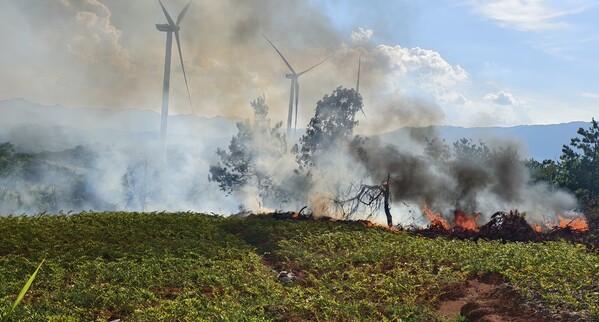 7月25日,電建新能源公司湖南桂陽光明風(fēng)電場員工檢修返程途中,用果敢行動(dòng)踐行“愛心電廠”承諾,與村民并肩撲滅突發(fā)山火,守護(hù)了村民生計(jì),贏得贊譽(yù)。 當(dāng)日17時(shí)10分,現(xiàn)場負(fù)責(zé)人陳佳帶隊(duì)完成風(fēng)機(jī)槳葉專項(xiàng)巡檢后返程,行至玉竹田時(shí),火光與呼救聲引起了他們的注意。循聲望去,幾位村民正手足無措地?fù)]舞著樹枝撲火,地里連片玉竹苗已騰起熊熊火光,濃煙翻滾。 “停車!快幫忙!”陳佳立即率全員投入戰(zhàn)斗?;饎萁栾L(fēng)勢蔓延,已吞噬近半農(nóng)田,萬分緊急,半小時(shí)內(nèi)將威脅更多作物。他迅速指揮,利用車上滅火器材,與村民并肩沖向火場。 經(jīng)過奮力撲救,山火終被撲滅,現(xiàn)場焦痕遍地,焦糊刺鼻,眾人臉上卻滿是欣慰。一位頭發(fā)花白的村民緊拉員工的手,眼眶泛紅:“太感謝了!這火來得太突然,要不是你們,我們一年的指望就沒了!”員工擦一把臉上的汗水和煙灰,誠懇回應(yīng):“大爺別客氣。我們在這工作,和鄉(xiāng)親們就是一家人。保護(hù)家園,義不容辭!” 此次援手為村民挽回?fù)p失,傳遞了“愛心電廠”的濃濃暖意,拉近了彼此距離。電建新能源公司各場站在保障綠色能源生產(chǎn)的同時(shí),始終心系民生,將央企責(zé)任化為切實(shí)關(guān)懷。未來,光明風(fēng)電場將繼續(xù)秉持“愛心”理念,用實(shí)際行動(dòng)傳遞溫暖與力量,彰顯有溫度、有擔(dān)當(dāng)?shù)摹皭坌碾姀S”本色。 |