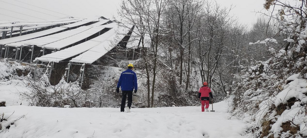 “北國風(fēng)光,千里冰封,萬里雪飄。”2026年元旦佳節(jié),正當(dāng)千家萬戶沉浸在辭舊迎新的喜悅中時,陜西寶雞遭遇強降雪天氣,暴雪裹挾著寒風(fēng)席卷而來。 電建新能源公司陜西寶雞運維中心光伏場區(qū)積雪深度達(dá)10厘米以上,部分路段積雪過膝,通往光伏場區(qū)的道路被皚皚白雪完全封堵,后臺監(jiān)控發(fā)現(xiàn)17#箱變1#逆變器的通訊信號時斷時續(xù),山上光伏設(shè)備運行狀況成了懸在運維人員心頭的“未知數(shù)”。為摸清設(shè)備實情、守護電站安全穩(wěn)定運行,保障節(jié)日期間電力供應(yīng)“不斷檔”,寧夏分公司陜西寶雞運維中心的運維人員們以雪為令、向險而行,毅然選擇徒步上山,用腳步?jīng)_破雪阻,在風(fēng)雪中筑起堅不可摧的能源保供屏障。 “腳下注意暗冰,跟著我的腳印走!”山路上,積雪掩蓋了原本的巡檢步道,每一步都充滿未知與風(fēng)險。隊員們相互攙扶、彼此提醒,手中的鐵鍬不斷試探前方路況,厚重的防寒服很快被汗水浸濕,臉頰被寒風(fēng)刮得通紅,但沒有人停下腳步。經(jīng)過近2個小時的徒步跋涉,他們終于抵達(dá)光伏場區(qū)17#箱變1#逆變器,來不及搓熱凍僵的雙手,便立刻投入工作。工作人員迅速拿出檢測儀器排查通訊信號時斷時續(xù)的故障根源,小心翼翼清理設(shè)備表面及周邊的積雪與結(jié)冰,緊固松動的接線端子,檢查系統(tǒng)運行狀態(tài),逐項核對設(shè)備參數(shù)與后臺數(shù)據(jù),精準(zhǔn)完成逆變器消缺作業(yè),全力保障光伏設(shè)備安全穩(wěn)定運行。當(dāng)夜幕降臨,城市燈火璀璨、萬家團圓之時,運維中心的監(jiān)控室內(nèi)依然燈火通明,值班人員緊盯屏幕上的各項數(shù)據(jù),實時監(jiān)測設(shè)備運行狀態(tài),確保突發(fā)情況能夠第一時間響應(yīng)處置。 “北風(fēng)卷地白草折,胡天八月即飛雪”,這場跨年暴雪考驗著設(shè)備的極限,更彰顯著電建人的擔(dān)當(dāng)。運維人員們以“雪不停、人不歇”的堅守,用腳步丈量初心,用實干詮釋責(zé)任,在千里冰封的光伏場站書寫著能源保供的動人篇章。他們的身影,如同雪海中挺立的鐵塔,守護著每一度清潔電力的平穩(wěn)輸出,讓這個元旦假期因堅守而更加溫暖。 |