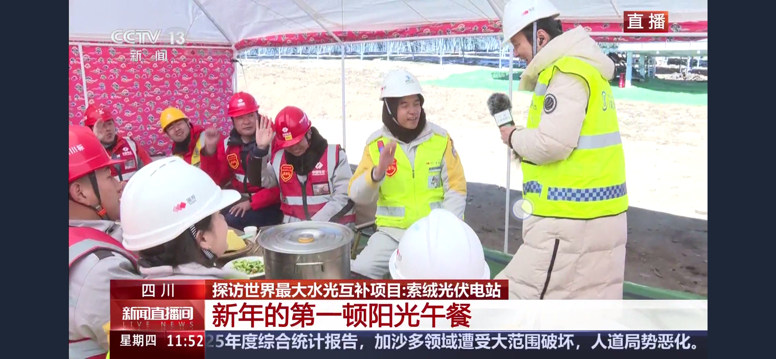 近日,四川省甘孜藏族自治州理塘縣索絨光伏項目并網發電,央視新聞兩度進行報道。 12月31日,央視新聞《朝聞天下》報道雅礱江索絨光伏電站、茶布朗光伏電站兩座百萬千瓦光伏項目同步投產發電。1月1日,央視新聞頻道《新聞直播間》“大國工程進行時”欄目跨年直播。央視新聞記者探訪索絨光伏項目現場,用5分鐘專題片再次對該項目進行報道。 索絨光伏項目位于海拔高程4100至4700米的高原,裝機容量1000兆瓦,是理塘縣首個百萬千瓦級可再生能源項目。項目共308個光伏方陣,光伏場區占地約2.1萬畝。建設過程中,累計為當地提供就業崗位超過1000個,有效拉動了理塘縣的經濟增長。索絨光伏全部投產后,每年可節約標準煤約59萬噸,減少二氧化碳排放約163萬噸。本次首批并網容量280兆瓦。 項目所發電量被輸送至鄰近的兩河口水電站,與水電打捆送出,通過水光互補、聯合調度的創新模式,有效平滑光伏發電的波動性,顯著提升區域電網的整體運行效率和清潔能源的穩定消納能力,對推動綠色低碳轉型,助力鄉村振興與“雙碳”目標落實,有效帶動理塘縣經濟增長與民生改善具有顯著作用。 |