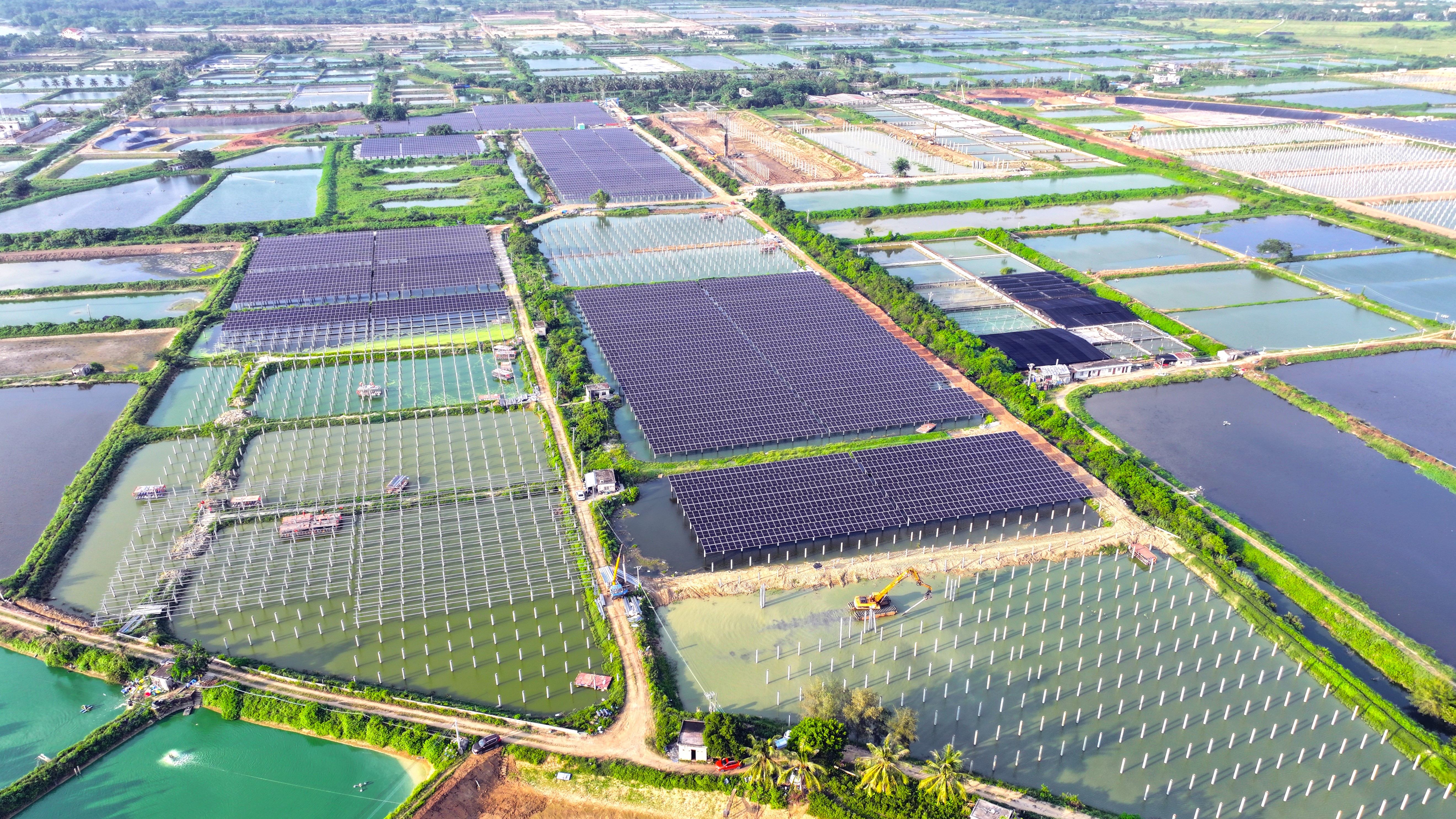前往海口市美蘭區三江農場,魚兒追逐嬉戲,“藍海”熠熠生輝,該地湖沼廣布、水域開闊,蘊藏著豐富的漁業資源,也為開發集中式光伏提供絕佳位置,一幅“水上發電、水下養殖”的生態畫卷正徐徐展開。