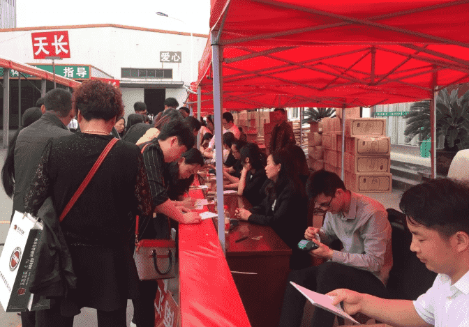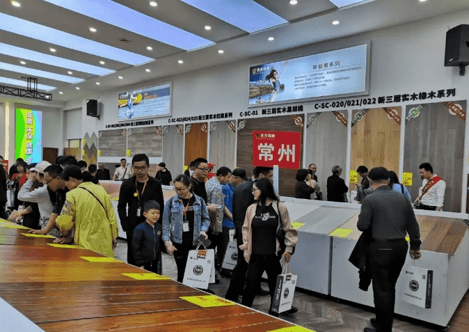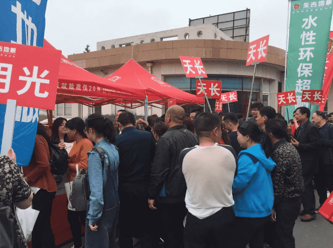 業主們來到了我們永吉地板生產基地廠購會的現場。現場早已聚集了一大批正在簽到的業主,領好簽到禮后此次的地板廠購正式拉開序幕。