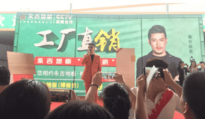 著名歌星白穆的到來更是引爆全場,首先感謝了永吉地板的傾情邀請,現場一曲《讓我一次愛個夠》讓氣氛更加高漲。火爆場面,再次印證了永吉地板強大品牌號召力與影響力。看得見的超實惠價格,看得見的品牌魅力和看得見的貨真價實證明了永吉對消費者的誠心。