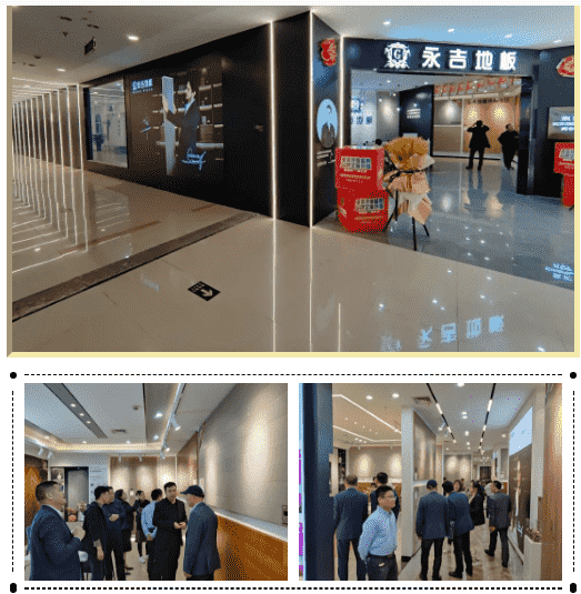 隨后經銷商們參觀了全新形象的金華永吉地板,升級后的裝修風格獨具一格,整個店面占地面積約為360平方米。在產品陳列、場景分區、沉浸體驗等方面進行了全面升級,在空間創意設計上,突破了傳統的產品陳列展示形式,將美學和空間藝術相融合,以簡潔明快的視覺效果營造出時尚前衛的氛圍,創造出一個純粹的家居體驗空間,為每一位用戶帶來安全、便捷、舒適的家居新體驗,感受像家一般的溫馨舒適。