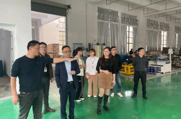 隨后來到生產車間,永吉地板引進先進的生產設備、優選基材,產品遠優于國家健康標準,為消費者帶去高品質、高品位的居家享受。通過此次近距離參觀考察,促進了雙方的友好合作和交流,加深了雙方友誼。永吉地板相信,只有健康安全的好產品,才能營造真正健康的家居環境。