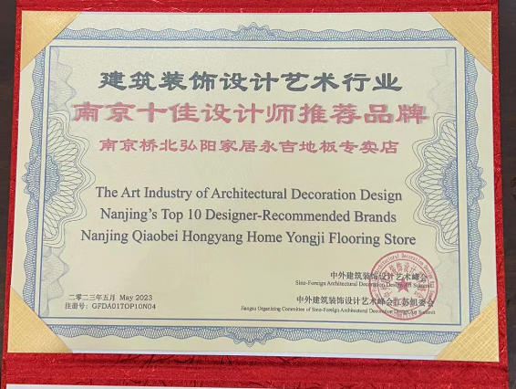 永吉地板洞悉前沿趨勢,引領創新設計潮流,聚力構建創意設計產業新生態,多元文化藝術融合發展中,展示了永吉品牌形象,在本次峰會中榮獲建筑裝飾設計藝術行業“南京十佳設計師推薦品牌”,永吉從技術、設計、性能等多方面都有創新,設計緊跟時尚流行的家裝風向,以清晰的定位、鮮明的個性覆蓋了不同的消費人群。