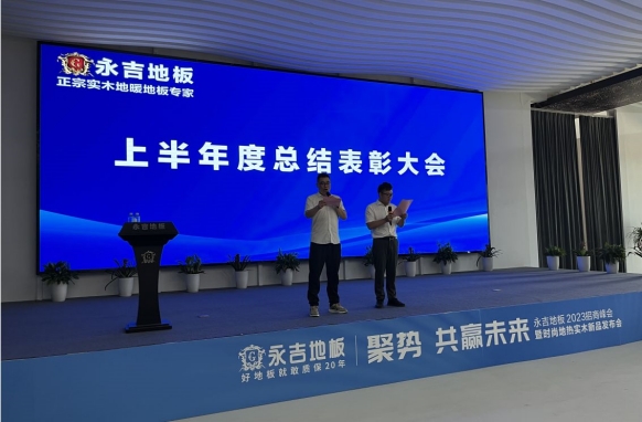 本次永吉地板2023上半年度總結表彰大會圓滿落幕,總結贏得成功,經(jīng)驗指導前行。下半年,各部門必須攻堅克難,緊盯年度目標任務,努力在提速中超越,完成公司下達的業(yè)績指標。