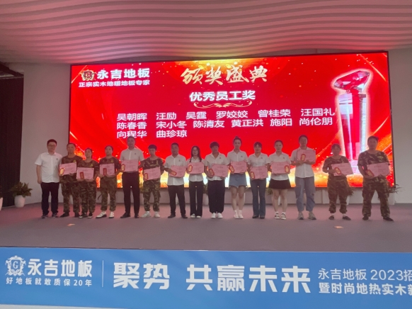 2023上半年永吉地板在公司領導的引領下取得矚目的佳績,大家的努力得到了高度認可。同時也涌現(xiàn)出一批批誠信工作、愛崗敬業(yè)、用心服務、追求創(chuàng)新的先進個人和先進集體,是他們用自己的行動向我們展示了永吉人的良好工作作風。本次大會的表彰環(huán)節(jié)對2023上半年度的先進個人和先進團隊進行表彰,鼓勵大家再接再厲,做出好成績!