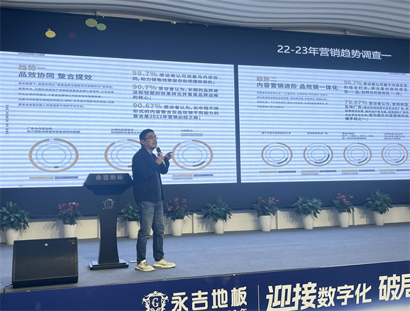 副總經理兼市場中心總監江勁松先生從建材行業零售及行業直播現狀鼓勵經銷商大力開展直播