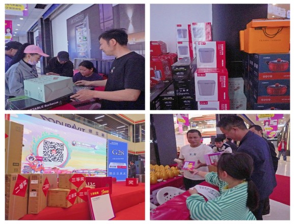 主持人向全員介紹本次活動的內容及流程。隨著抽獎、敲金蛋等福利的大放送,場內顧客絡繹不絕,現場氛圍達到高潮,搶購風暴更是一波接一波,引爆家居消費狂潮!