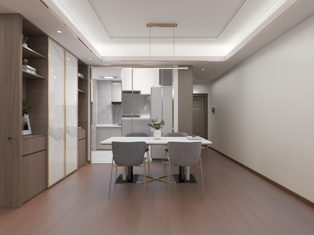 摩登、優雅、奢華美學,簡潔高雅且溫暖奢華,溫潤柔和的整體線條中泛著金光的線條洗練利落,使空間在光影之下愈加彰顯質感。