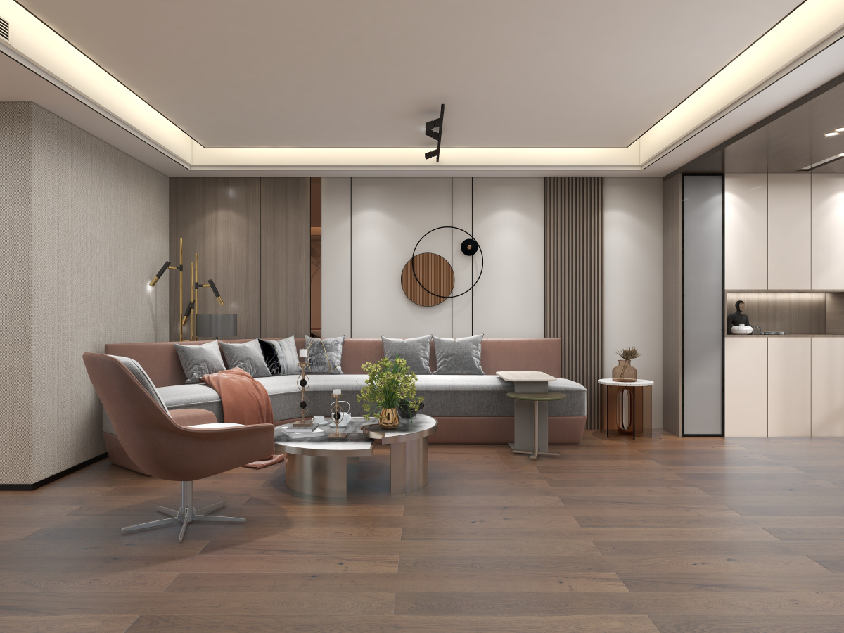 采用開放漆工藝。自然紋理與拉絲工藝的巧妙結合,猶如魔法般呈現出地板柔和細膩的線條;著重渲染木質的流動走向,明暗交替間,形成極強視覺沖擊,頗具尊貴的王者之風。